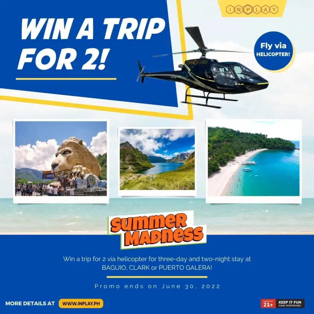 Summer Madness Promo Overview: 𝐇𝐈𝐍𝐃𝐈 𝐏𝐀 𝐇𝐔𝐋𝐈 𝐀𝐍𝐆 𝐋𝐀𝐇𝐀𝐓!! Gusto mo bang sumakay ng helicopter at pumunta ng Puerto Galera o Clark? Sali na sa Summer Madness at InPlay! 𝙽𝙾 𝙴𝙽𝚃𝚁𝚈 𝙵𝙴𝙴! Register lang sa www.inplay.ph and may chance ka at ng kasama mo makapunta sa destination mo! For full T&C, visit www.inplay.ph#summergiveaway #summermadness #inplay […]